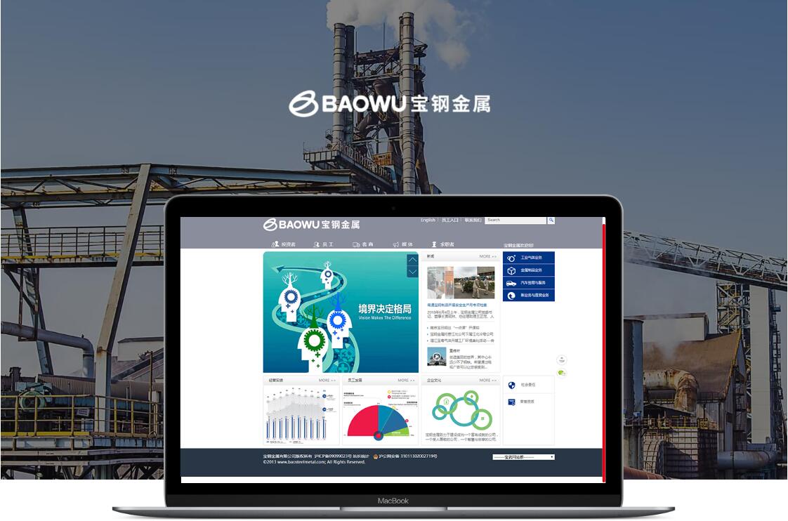 寶鋼金屬是寶鋼集團(tuán)公司全資子公司之一。為大力發(fā)展鋼材延伸加工產(chǎn)業(yè),2007年底寶鋼集團(tuán)整合產(chǎn)業(yè)公司、鋼制品事業(yè)部、汽貿(mào)和線材制品等業(yè)務(wù),組建成立寶鋼金屬,使之成為寶鋼鋼材延伸加工產(chǎn)業(yè)發(fā)展的重要平臺(tái)。 寶鋼金屬是寶鋼六大業(yè)務(wù)板塊之一,其核心業(yè)務(wù)包括鋼結(jié)構(gòu)、金屬包裝、工業(yè)氣體等。