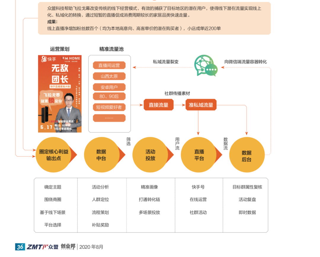疫情期間,這家專注高品質(zhì)的線下企業(yè)客流大幅降低。眾盟科技幫助飛拉戈慕改變傳統(tǒng)的線下經(jīng)營模式,有效的捕獲了目標地區(qū)的潛在用戶,使得線下潛在流量實現(xiàn)線上化、私域化的轉(zhuǎn)換,通過短暫的直播促成消費周期較長的家居品類快速走量。