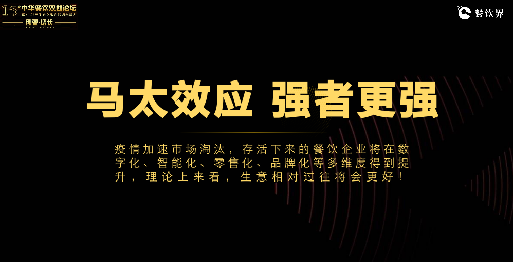 由此我們發(fā)現(xiàn):馬太效應(yīng)生效,強(qiáng)者恒強(qiáng)!疫情只是加速淘汰,而活下來的餐飲企業(yè),在疫情的自救下,可能在品牌、營(yíng)銷、數(shù)字化、供應(yīng)鏈等多維度都實(shí)現(xiàn)了迭代升級(jí),理論上講,生意有可能更好了。